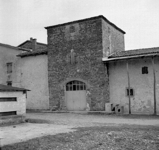 Complesso fortificato con impianto di forma quadrangolare (28x32 metri). All’interno un edificio a forma di ‘L’, comprendente a oriente l’ampia dimora padronale; a settentrione l’ala adibita a servizi; una corte quadrata chiusa lungo i lati sud e ovest da due alti recinti murati. Nell’ala nord si impone centralmente l’avancorpo quadrangolare della torre-porta, punto di accesso originario al cortile interno della casaforte, con particolari architettonici (aperture ad arco archivoltato, dentelli in laterizio di imposta del tetto) che si possono far risalire al XV secolo e con accorgimenti difensivi oggi parzialmente murati (caditoie poste sia sul lato esterno che in quello interno). Ai due lati della torre-porta si aprono alcuni vani di servizio, uno dei quali probabilmente aveva in origine funzione di cucina (a oriente), in quanto dotato di nicchia portaoggetti e focolare. Nel lato orientale dell’edificio si colloca una seconda torre-porta (il cui ingresso oggi è murato), con finestra alla lombarda all’ultimo piano, cornice in laterizio lungo il sottotetto, feritoia archibugiera rivolta verso nord. Dalla corte, un’ampia apertura immette a un piccolo ambiente che prelude all’androna passante - monumentale e caratterizzata da un soffitto ligneo dipinto, oggi gravemente deteriorato - caratterizzato a nord da due altissime arcate a tutto sesto, binate, che immettono nel vano scale e a sud da altre due aperture - simili alle precedenti e ugualmente binate pure se oggi parzialmente murate - che immettono in un locale rettangolare, coperto con eleganti voltine a crociera. Dall’androna si accede a un altro vano, oggi con solaio piano ma in origine voltato. Il piano nobile in origine doveva essere caratterizzato da quattro ariose arcate a sesto ribassato impostate su capitelli quadrati in pietra che si aprivano sulla corte interna dando luce alla loggia comunicante con i tre saloni principali.