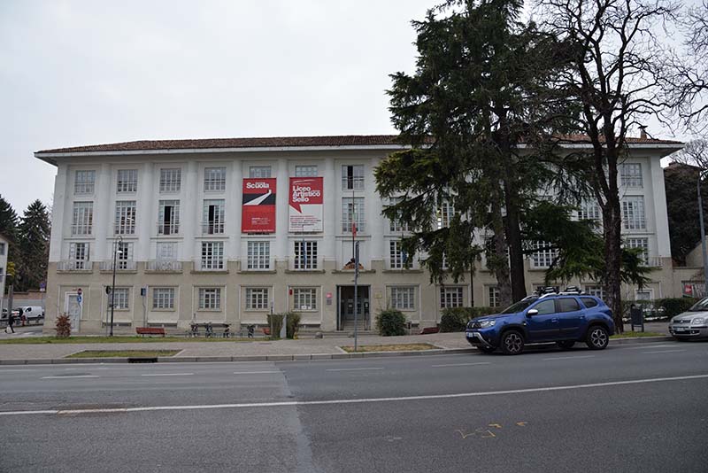 L'edificio, progettato e realizzato da A. Sello, è caratterizzato da una chiarezza dell'impianto compositivo e figurativo che ne fanno elemento anticipatore di certo novecento razionalista italiano. Il palazzo planimetricamente è caratterizzato da un corpo centrale perpendicolare al fronte strada, costituito da un ampio atrio a doppia altezza, con ballatoio e scala simmetrica a tenaglia, e da un retrostante corpo dei servizi, attraversato centralmente da un corridoio di collegamento con il giardino retrostante, e da due ali laterali attualmente organizzati in maniera piuttosto irregolare; di testa all'edificio; sul lato sinistro; è collocato un appartamento a due piani con ingresso indipendente. Volumetricamente l'edificio, di quattro piani, è di forma parallelepipeda, con un volume aggettante sul retro, coperta a padiglione. Il prospetto principale, delimitato da pilastri scanalati, è modulato dal ritmo strutturale descritto da semicolonne poggianti sullo zoccolo rustico del piano terra e concluse da elementi cilindrici in mattoni a diretto sostegno del tetto. Aperture di facciate regolari. Negli anni cinquanta è stata effettuata un'apertura delle finestre negli spazi tra le colonne dei prospetti, slavo quelle preesistenti nel mezzarino, e successive trasformazioni dell'organizzazione interna.