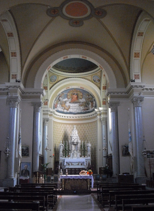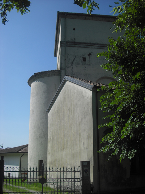 Edificio ad aula unica rettangolare con profonde cappelle laterali, presbiterio rettangolare e ridotta abside semicircolare; murature in elevazione in pietra mista; tetto dell'aula a capanna, a due falde; tetto del presbiterio a quattro falde e dell'abside a semicono.