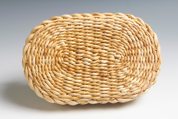 Tessitura su stampo, fondo tessitura cordoncino di media grandezza, tecnica a torciglione. Ai lati n. 8 giri di corda più grossa con tessitura intrecciata.