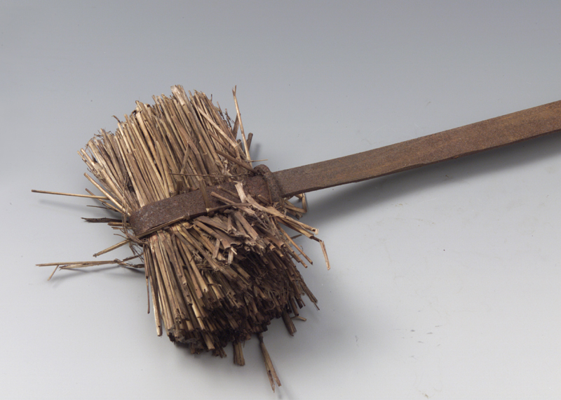 E' costituito da un'asta in acciaio a sezione rettangolare di minimo spessore piegata da una parte a cerchio e dall'altra a 180° . Gli steli fuoriescono notevolmente dal profilo dell'asta, alcuni sono spezzati, altri sporgono dal mazzo. L'anello è leggermente appiattito.