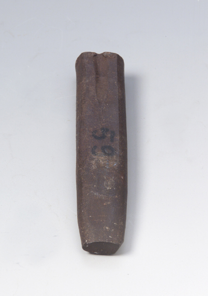 Si tratta di un solido avente base rettangolare ed angoli e bordi arrotondati. I due piani opposti sono quadrilateri ed inclinati tra loro sino ad andare a convergere nella punta o taglio. In prossimità della testa, al centro, i due piani presentano una svasatura ciascuno che funge da incastro utile all'aggancio della spina stessa nel vano apposito situato nella testa del maglio. Gli altri due piani sono triangolari e paralleli. Uno dei quattro lati reca un'iscrizione eseguita con pennarello indelebile nero.