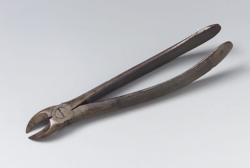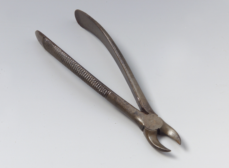 Lo strumento è costituito da due gambi imperniati a croce che si aprono e si chiudono mediante il movimento esercitato dalla mano sui gambi. Ciascuno di essi termina con becco arcuato e appuntito, parallelo al piano del manico; un incavo longitudinale separa le due parti. I gambi sono uniti con vite cilindrica con intaglio in vista, situata nella parte piatta e ben levigata tra ganascia e gambo. Questa parte, lateralmente, porta gli incastri per la chiusura e apertura. I gambi sono inoltre arcuati e piegati al'indietro, senza toccarsi convergono nell'ultimo tratto in prossimità del calcagno. Hanno un profilo arrotondato e recante zigrinatura antiscivolo fatta di linee oblique incrociate e segna terminante da entrambe le parti rispettivamente con due linee parallele incise, perpendicolari all'asse longitudinale dei gambi. I becchi anche se chiusi non si toccano.