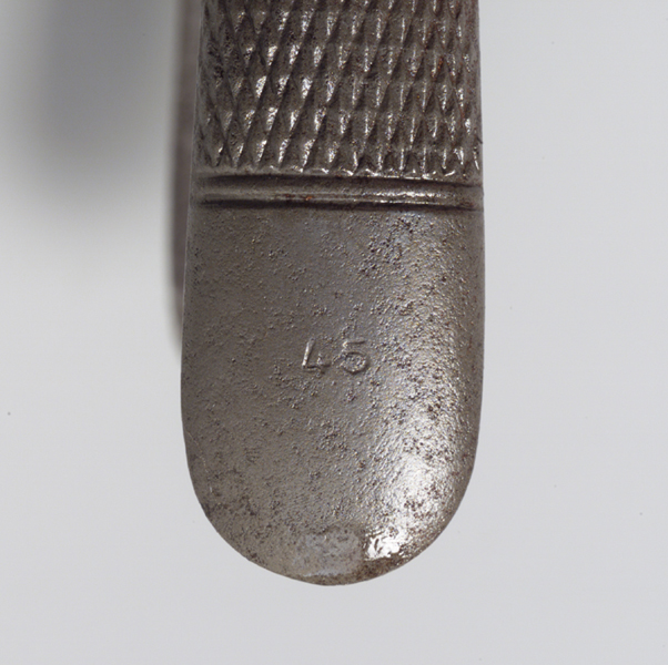 Si tratta della pinza modello 45 che si compone di due parti costituite da un becco (ganascia) e da un gambo ciascuna, assemblate a croce mediante una vite cilindrica con intaglio in vista situata nell'imposta ganasce-gambi (la quale presenta anche gli incastri utili all'apertura e alla chiusura delle pinze). I gambi, leggermente arcuati, convergono nell'ultimo tratto in prossimità del calcagno dove aumentano la loro larghezza. Hanno la faccia esterna arrotondata e munita di zigrinatura anti scivolo costituita da una serie di linee incise ed incrociate e racchiusa tra altre due linee parallele tra loro e perpendicolari all'asse longitudinale dei gambi. Le ganasce presentano la faccia interna piatta, si sfiorano lungo il primo tratto per poi staccarsi, arcuandosi leggermente nel tratto piegato a 90° rispetto all'asse longitudinale dei gambi; inoltre, rastremano in punta ed hanno il lato esterno arrotondato come le punte a becco.