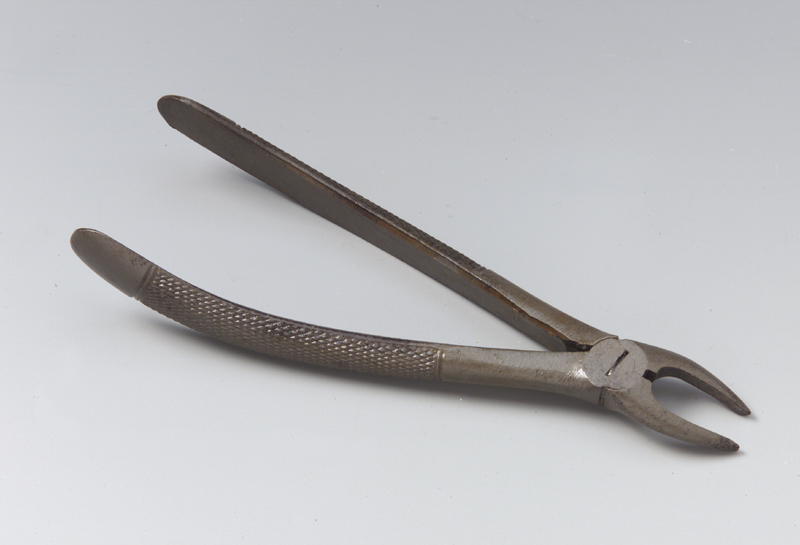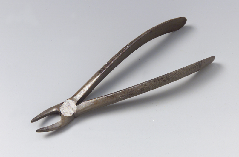 Lo strumento è costituito da due gambi imperniati a croce che si aprono e si chiudono mediante il movimento esercitato dalla mano sui gambi. Ciascuno termina con un becco arcuato, a punta arrotondata e sezione semicircolare, parallelo all'asse del manico. I due convergono ma tra loro c'è una fessura centrale. I gambi sono uniti con vite cilindrica con intaglio in vista, situata nella parte piatta e ben levigata tra ganascia e gambo. Questa parte, lateralmente, porta gli incastri per la chiusura e apertura. I gambi sono inoltre arcuati e piegati all'indietro al calcagno; senza toccarsi convergono in prossimità del calcagno. Hanno un profilo arrotondato e recano una zigrinatura antiscivolo fatta di linee oblique incrociate e segna terminante da entrambe le parti rispettivamente con due linee parallele incise, perpendicolari all'asse longitudinale dei gambi. I becchi anche se chiusi non si toccano.