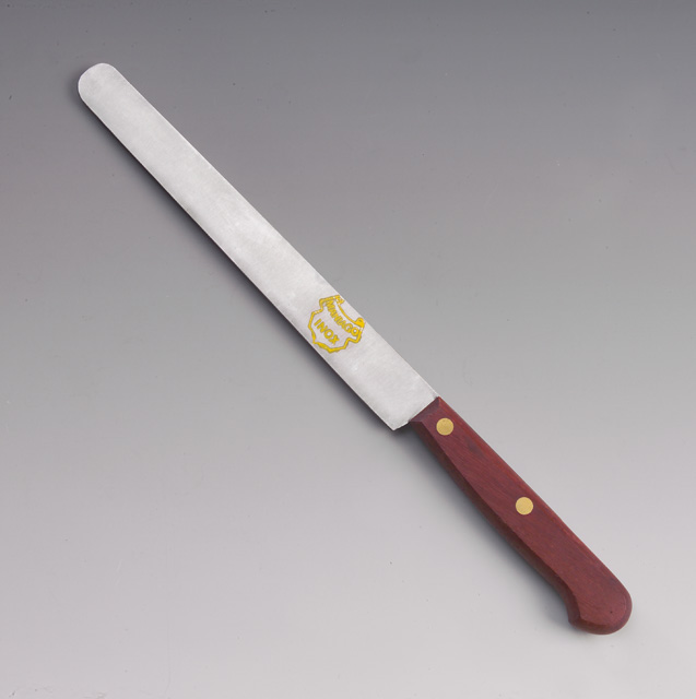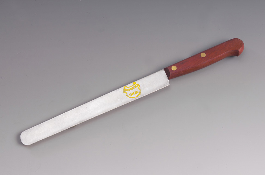 Il coltello si compone di una lunga lama con punta arrotondata e tagliente liscio, costa piatta e sezione cuneiforme. Il manico è dato da un pezzo unico di legno aperto sul dorso ed in testa per poter inserire il codolo della lama. La lama è fissata al manico con due rivetti in ottone. Il profilo del manico è rettangolare con un leggero rigonfiamento in mezzeria e un nasello al calcagno.