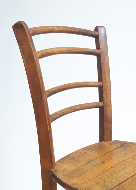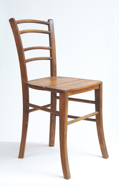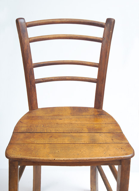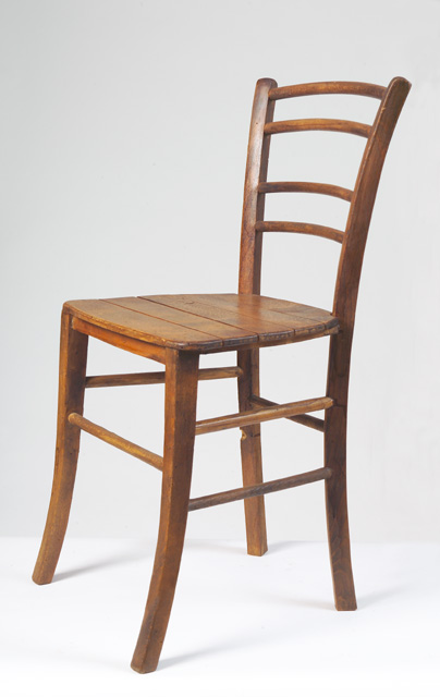 Sedia tipo #Marsiglia# per la struttura a sezione quadra delle gambe e #Marburg# per i fuselli che definiscono la spalliera. Il sedile a tavoletta è la variante della sedia impagliata. La sedia è sezione quadra, con le quattro gambe arcuate e le estremità superiori arrotondate. Presenta due fuselli per ogni lato, un fusello anteriore ed uno posteriore. Lo schienale è costituito da due coppie di traversine orizzontali. La seduta è formata da tavolette di legno inchiodate parallelamente allo schienale sul telaio. Da tale caratteristica deriva il nome #a tavoletta#.