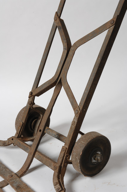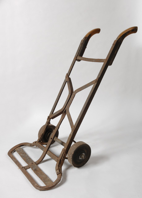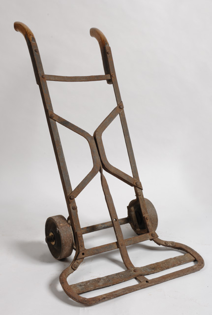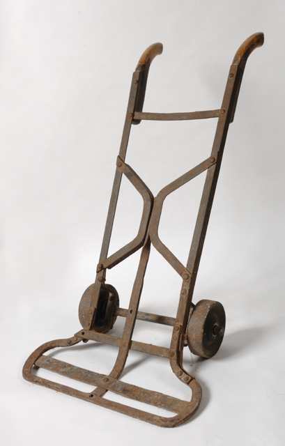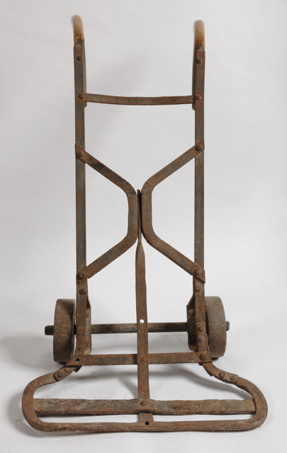 Struttura di metallo dotata inferiormente di un piccolo pianale di appoggio e di due ruote di ferro. Superiormente due manici di legno leggermente ricurvi sono fissati al telaio metallico mediante quattro bulloni.