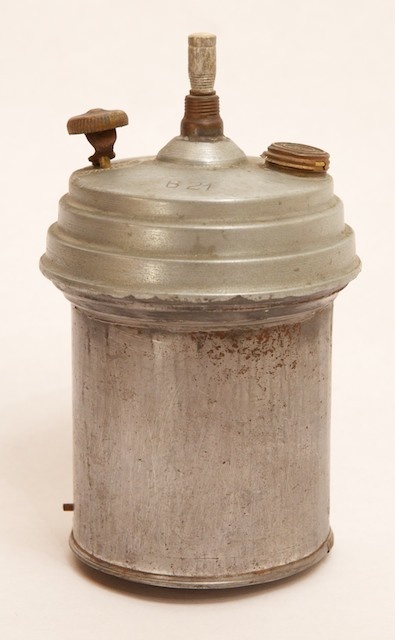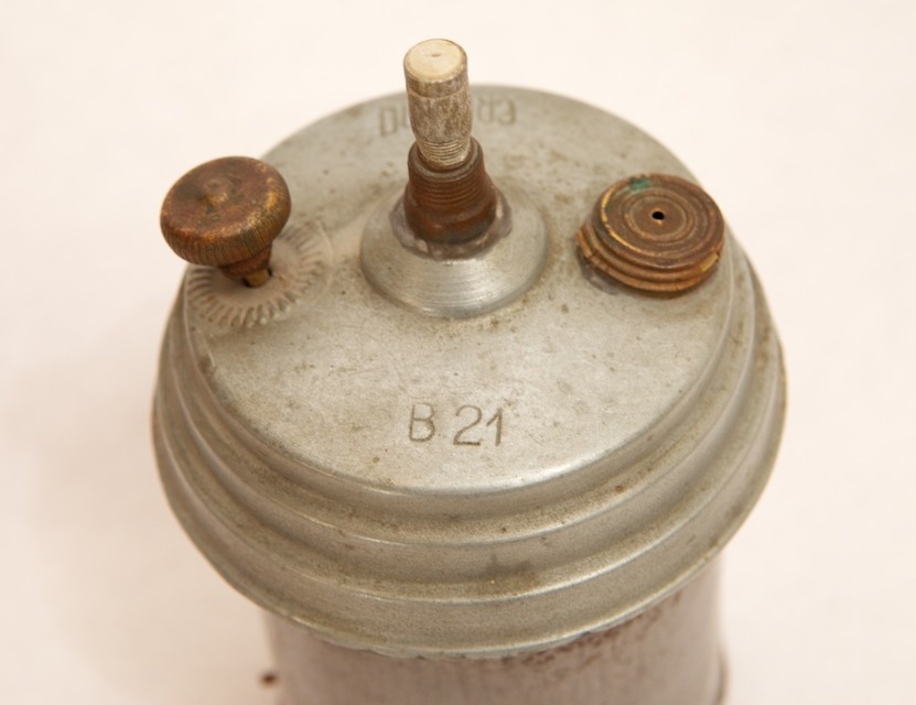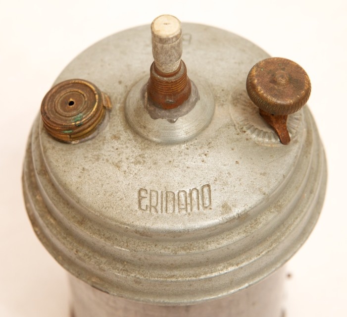 La lampada è composta da due contenitori sovrapposti, inseriti uno nell'altro e accorpati con un attacco a baionett; in quello inferiore è contenuto il carburo di calcio, in quello superiore l'acqua. L'acqua, attraverso un foro (regolato da una vite), precipita a gocce sul carburo innescando la reazione chimica che genera l'acetilene; quest'ultimo, attraverso un condotto viene indirizzato verso un beccuccio posto sulla parte superiore della lampada, da cui fuoriesce e dove può essere incendiato con un fiammifero. Sulla parte superiore del contenitore dell'acqua sono presenti, oltre al beccuccio di fuoriuscita dell'acetilene, anche la valvola per il carico dell'acqua e la vite di regolazione del flusso di caduta dell'acqua