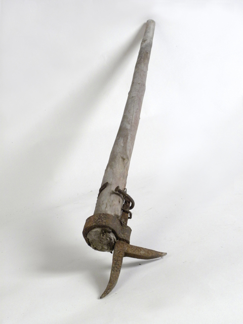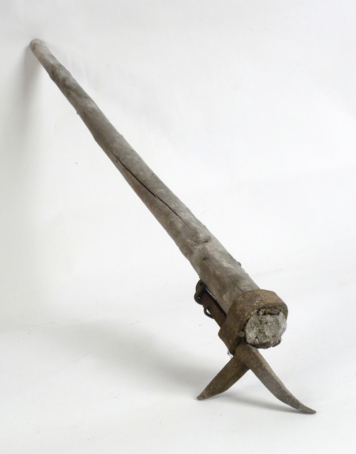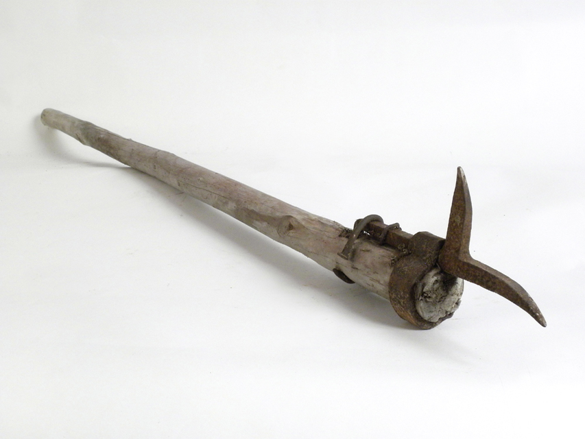 Attrezzo costituito da un robusto manico di legno e da una punta uncinata di ferro. Quest'ultima presenta una forma a T, con il lato più lungo fissato parallelamente al manico dell'attrezzo, in modo da ottenere due punte: una sull'estremità del manico e una di lato.