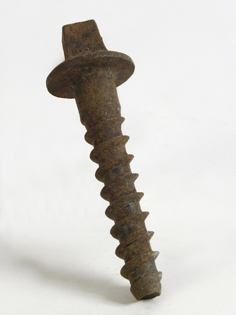 Oggetto di forma cilindrica, filettato, presenta una testa quadrata con base a sezione circolare.