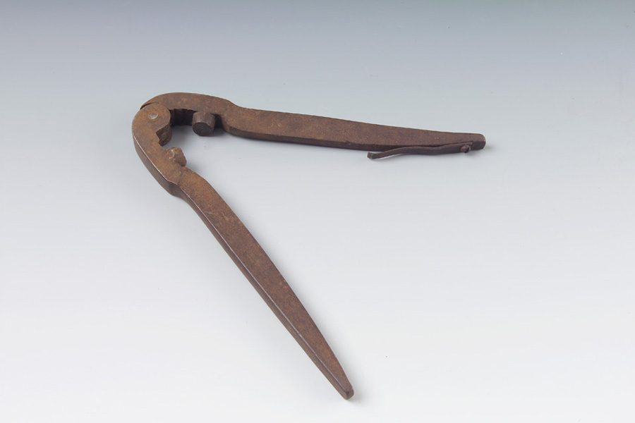 Le testine schiaccia piombino della pinza piombatrice imprimono rispettivamente le lettere "CM", in corsivo, e "DAZIO CONSUMO" in stampatello maiuscolo.