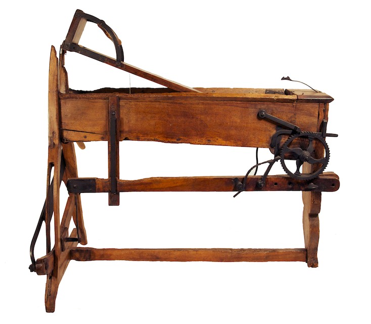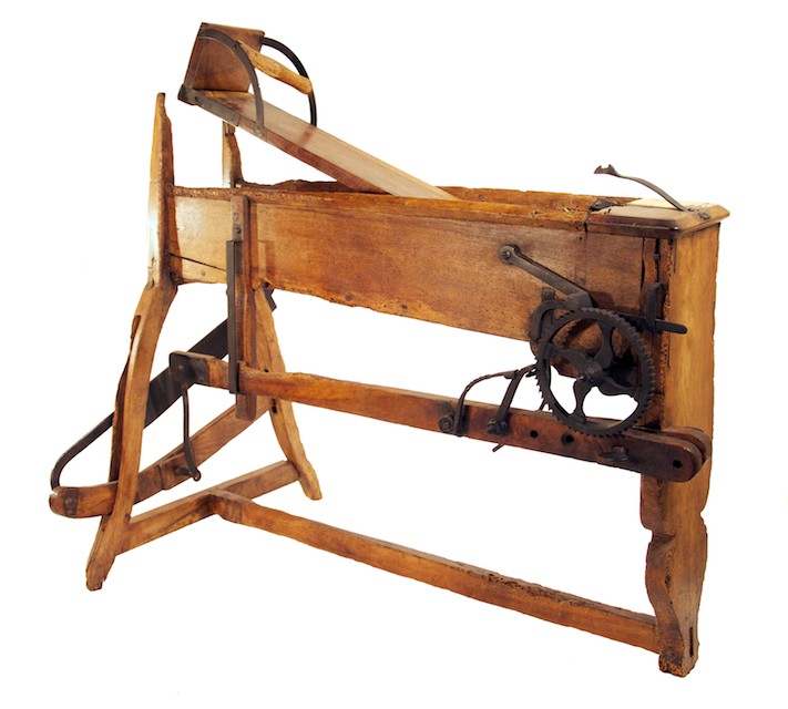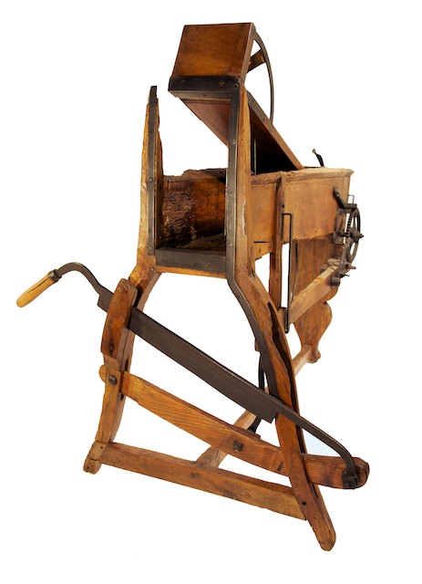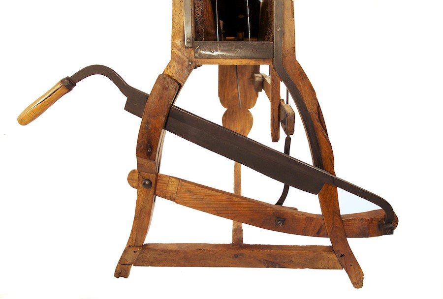 alcune parti sembrano realizzate con elementi di riuso (es. un vecchio mobile come sembra si possa dedurre dalle serrature sul lato superiore del contenitore). Le foglie venivano colte al mattino, prima che il sole potesse farle appassire. Lo stesso attrezzo poteva essere usato anche per triturare finemente il foraggio, specialmente paglia, foglie, più raramente fieno
