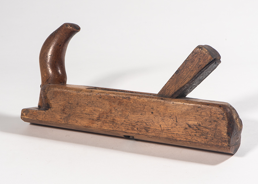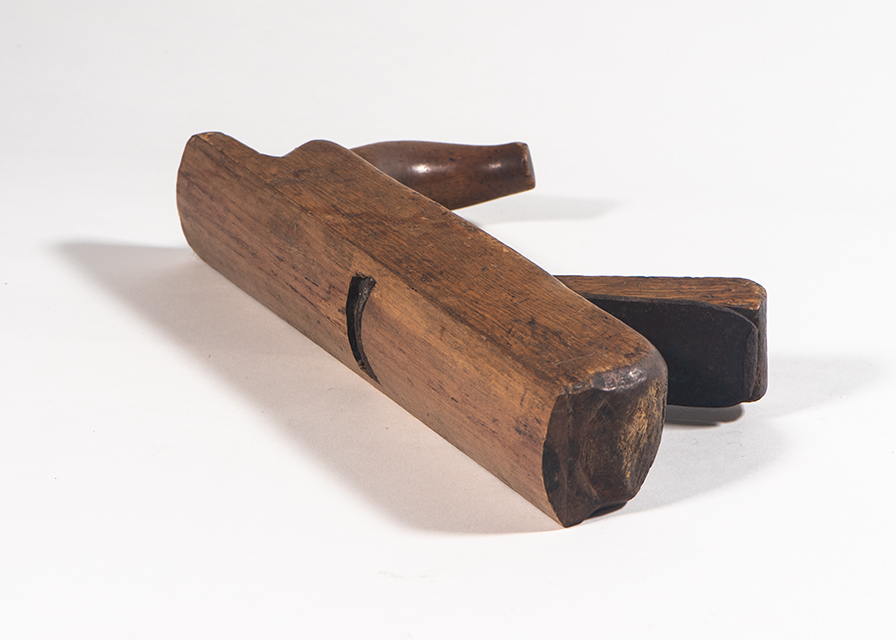 Questa pialla ha un corpo, chiamato ceppo, a forma di parallelepipedo con angoli smussati, in legno tarlato. Nella parte anteriore manca il manico o manubrio sporgente (chiamato anche #corno#). Nella parte centrale del ceppo è presente un foro da cui escono i trucioli asportati del legno. Verso la parte posteriore due scanalature ospitano rispettivamente il cuneo di fissaggio, o zeppa, e la lama, o coltello. La suola è formata da un pezzo di legno diverso e grezzo fissato al corpo con una vite (restano i fori per l'alloggio di altre tre viti mancanti). Il profilo del fondo è convesso e la lama, di conseguenza, è curva.