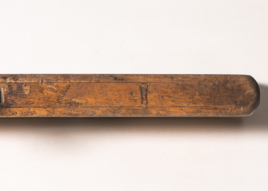 Questa pialla, chiamata comunemente #pialla modanatrice# o #incorsatoio#, ha un corpo e un cuneo in legno e una lama d'acciaio, arrugginita. Il corpo è un parallelepipedo con gli angoli arrotondati nella parte superiore. Sempre sulla faccia superiore del corpo è presente il marchio punzonato JOH WEISS & SOHN IN WIEN (si legge bene solo la parte sinistra: la mancante si integra per confronto con altri pezzi della collezione) sopra un morsetto e, a sinistra, la misura 9. I trucioli escono dal foro laterale. Sullo stesso lato del corpo, sopra il foro, sono presenti delle modanature. La parte inferiore della pialla, detta suola, presenta delle scanalature che saranno quelle conferite dalla lama al legno da lavorare.