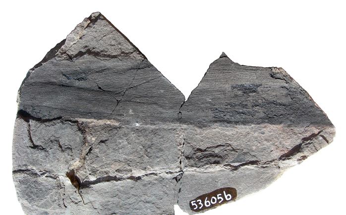 Frammento di grande foglia nastriforme conservata su lastra e controlastra. Si usa il termine lastra e controlastra perchè l'originario frammento di strato si è aperto in due parti lungo il piano di sedimentazione che contiene il resto fossile in modo che questo è rimasto sia su di una parte sia sull'altra. E' qui definita lastra la parte più grande; l'altra parte è la controlastra. La parte carboniosa del reperto è quasi completamente scomparsa e della foglia è conservata principalmente l'impronta. Si intravedono fitte nervature longitudinali. Pelourdea è una genere-forma triassico basato sulla morfologia delle foglie, che sono lunghe, lanceolate, con nervature parallele, e che si rastremano verso la base e verso l'apice.