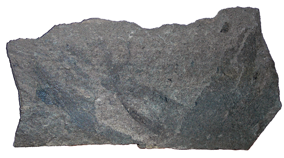 Frammento di foglia nastriforme con fitte nervature parallele longitudinali (riferibile forse a Pelourdea), pinnula isolata di felce e frammenti di ?foglie nastriformi più strette, conservati su di una lastrina rocciosa.