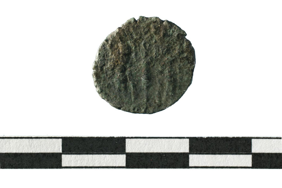 Testa di Costanzo II a d. con diadema, corazza e paludamentum