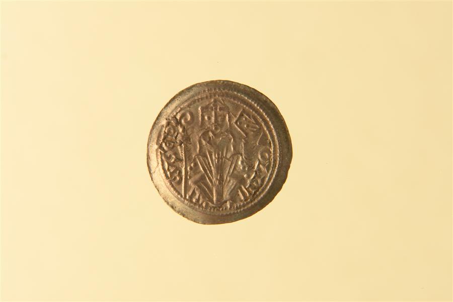 Vescovo mitrato seduto di fronte, tiene con la mano d. il pastorale e con la s., alzata, libro chiuso; cerchio perlinato VOLRI CVSEP(globetto)