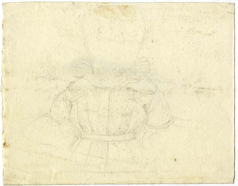 Sul recto del foglio due studi di braccia, uno steso lungo il corpo, con la mano piegata, l'altro portato al torace. Sul verso lo studio parziale per una figura femminile riccamente abbigliata, verosimilmente una bambina, considerate le proporzioni della testa appena abbozzata. Il tratto è piuttosto sbiadito.