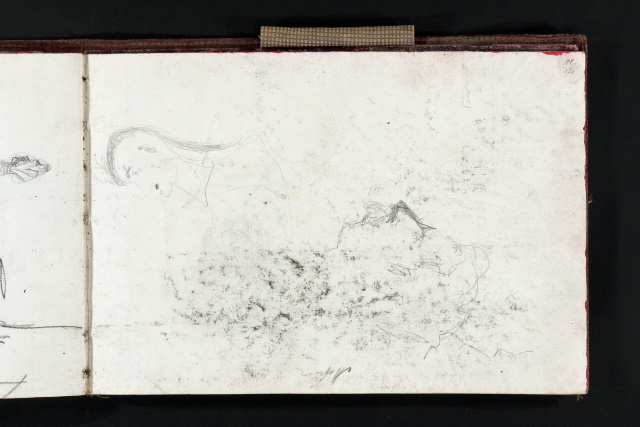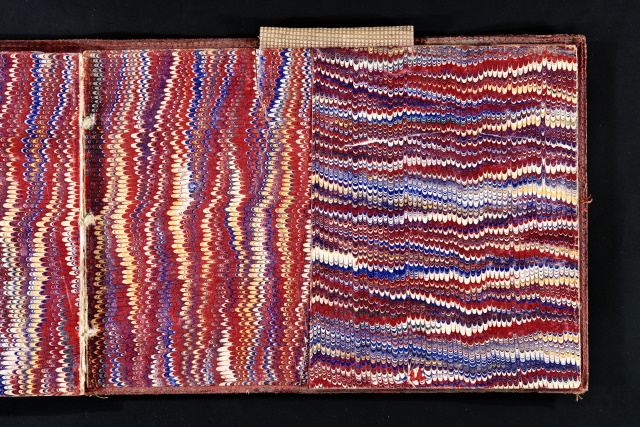 L'album ha piatti di copertina cartonati e ricoperti in tela beige con profili in cuoio, due fogli di risguardia e 47 fogli non numerati disegnati sul recto e parecchi anche sul verso, eseguiti a matita (di grafite, nera, uno blu), a penna e uno all'acquerello.