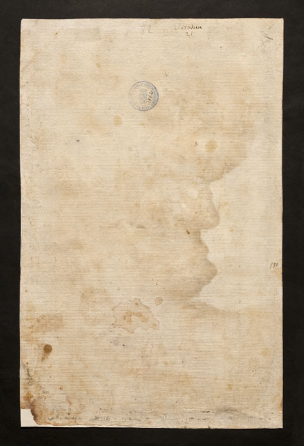 Al centro, un’ara con piedistallo su cui è scolpita a rilievo una scena classica; ai piedi dell’ara un cupido semi sdraiato con faretra, frecce e un elmo; sulla parte intermedia dell’ara siede un uomo barbuto con scettro incoronato nella mano destra; accanto a lui, un angelo tiene nella destra un bastoncino, stando lievemente inclinato in avanti; dietro alla sommità dell’ara una grande coppa con base antropomorfa e mascherone sul bordo; in alto a destra si libra un angioletto con corona d’alloro.