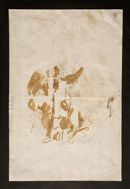 Al recto: gruppo con una figura femminile stante (Santa Caterina da Siena), una figura leggermente china (Sant’Agnese da Montepulciano) che regge il Bambino e, a sinistra, una figura indistinta (Santa Rosa da Lima); in alto, un angelo e, ai piedi del gruppo, il busto di un frate di profilo e due teste. Al verso: gruppo con due figure (Santa Caterina da Siena e Sant’Agnese da Montepulciano) che reggono il Bambino; davanti, una figura inginocchiata (Santa Rosa da Lima).