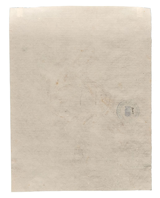 Figura femminile con un seno scoperto, che siede su una nube con la testa rivolta a sinistra.