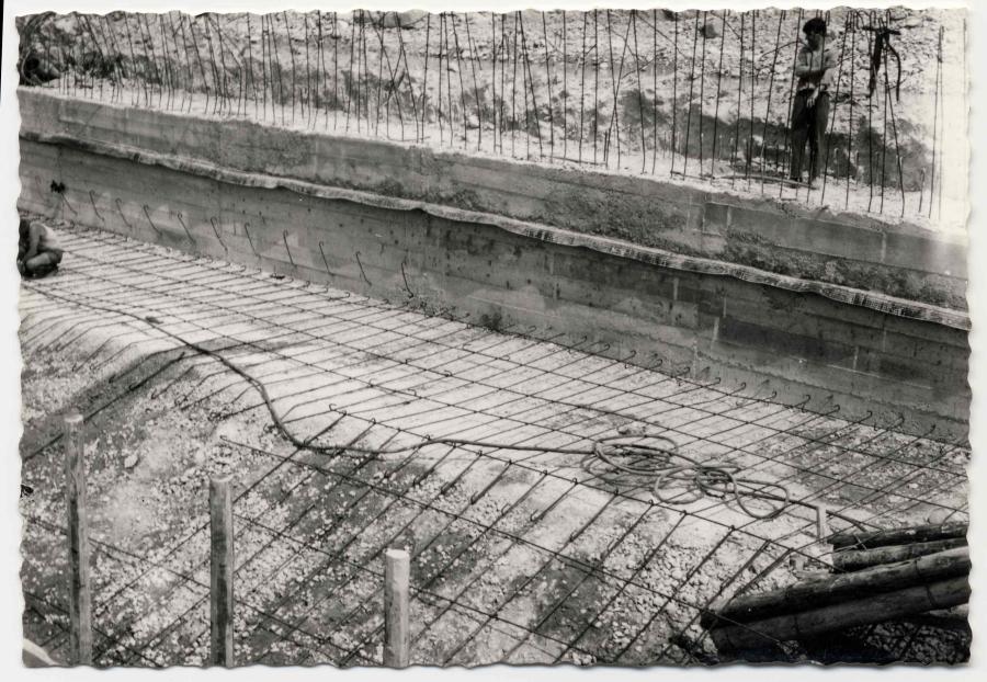 Gorizia: Isonzo; opere di sbarramento in costruzione, particolare del cantiere: armatura