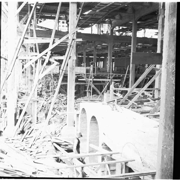 Torre di Zuino. Scorcio del cantiere dello stabilimento. Impalcature e interno di un edificio in costruzione -