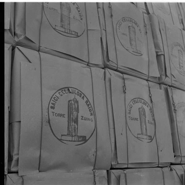 Torre di Zuino - Balle di cellulosa impilati si legge il marchio: "SAICI cellulosa Raion / Torre Zuino"