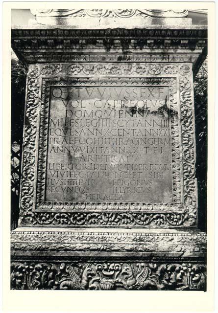 supporto primario, verso: 4623/75/ VII . 63 6 6/ Aq. UD/ Monumento sepolcrale/ di [...] particolaredell'iscriz.