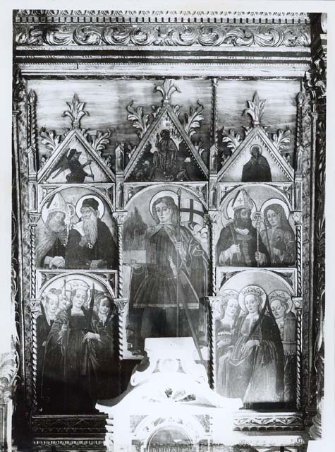 sul supporto secondario, in alto: C. Forni di Sopra - (Udine)/ Chiesa S. Floriano/ Altare del Santo con tavola del Bellunello/ ARCHIVIO FOTOGRAFICO DELLA SOPRINTENDENZA DI VENEZIA/ Negativo/ N° 1707/ Data 1908