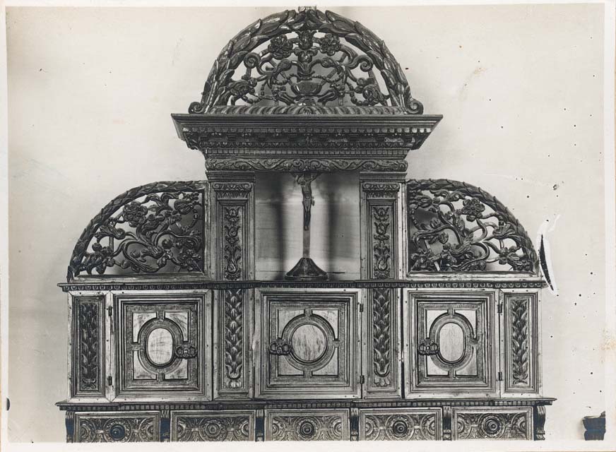 sul supporto secondario, in alto: Forni di Sopra - Chiesa di/ S. Maria Assunta - Mobile in sagrestia/ (sec. XVII). (Udine)/ ARCHIVIO FOTOGRAFICO DELLA SOPRINTENDENZA DI VENEZIA/ Negativo/ N° 4366/ Data 7mbre 1923