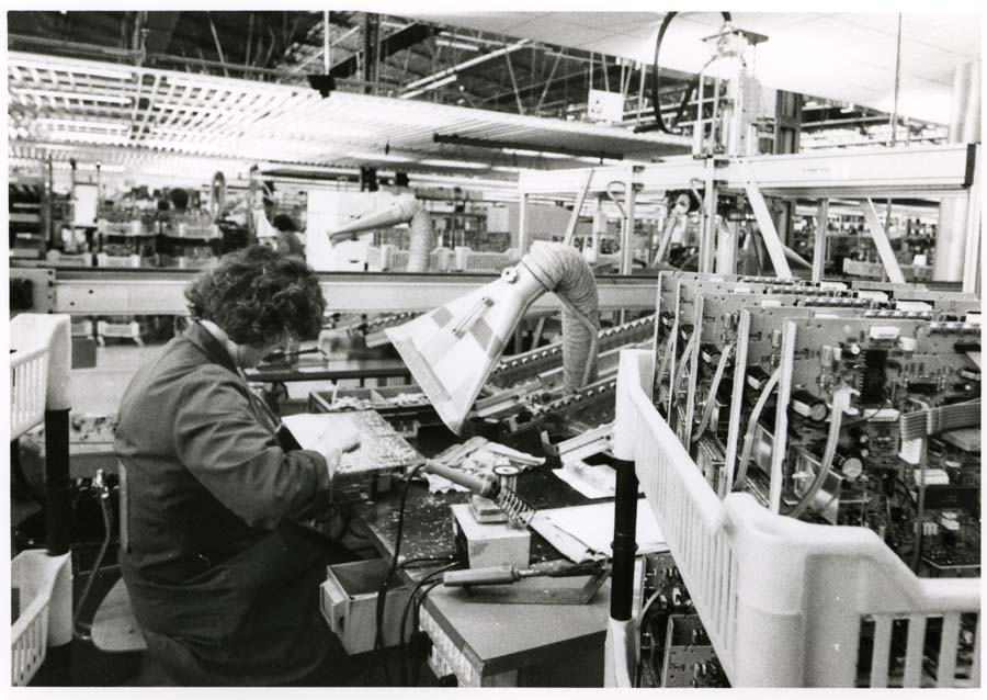Operaia dell'azienda Seleco Spa al lavoro