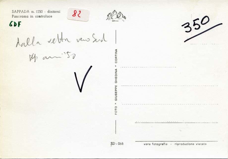 verso, in alto: SAPPADA m. 1250 - dintorni/ Panorama in controluce