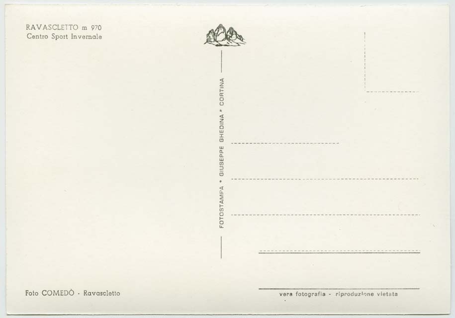verso, in alto a sinistra: RAVASCLETTO m. 970 Centro Sport Invernale