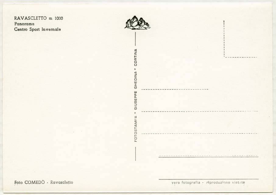verso, in alto a sinistra: RAVASCLETTO m. 1000/ Panorama/ Centro Sport Invernale