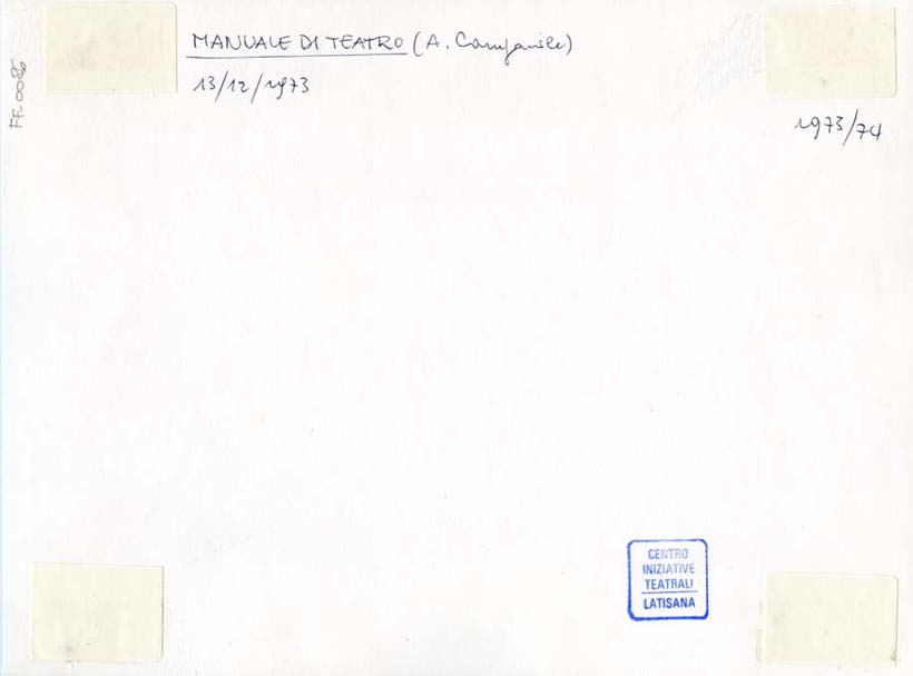 sul verso, in alto a sinistra: MANUALE DI TEATRO (A. Campanile)/ 13/12/1973