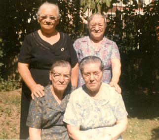 Foto ricordo a Philadelphia di quattro portatrici carniche emigrate negli Stati Uniti dopo aver sevito la patria durante il primo conflitto mondiale; a sinistra, sedute: Maria Primus, vedova Nicolino, la sorella Giuditta Primus in Primus, Teresa Primus vedova Puntel (prima a sinistra in piedi) e Cristina Giulia Puntel in Primus.