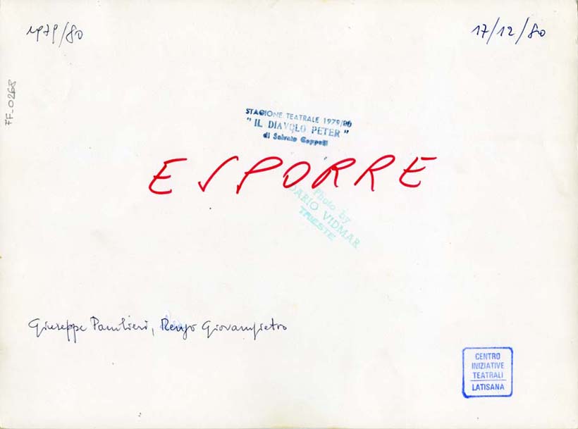 sul verso, in basso a sinistra: Giuseppe Pambieri, Renzo Giovampietro