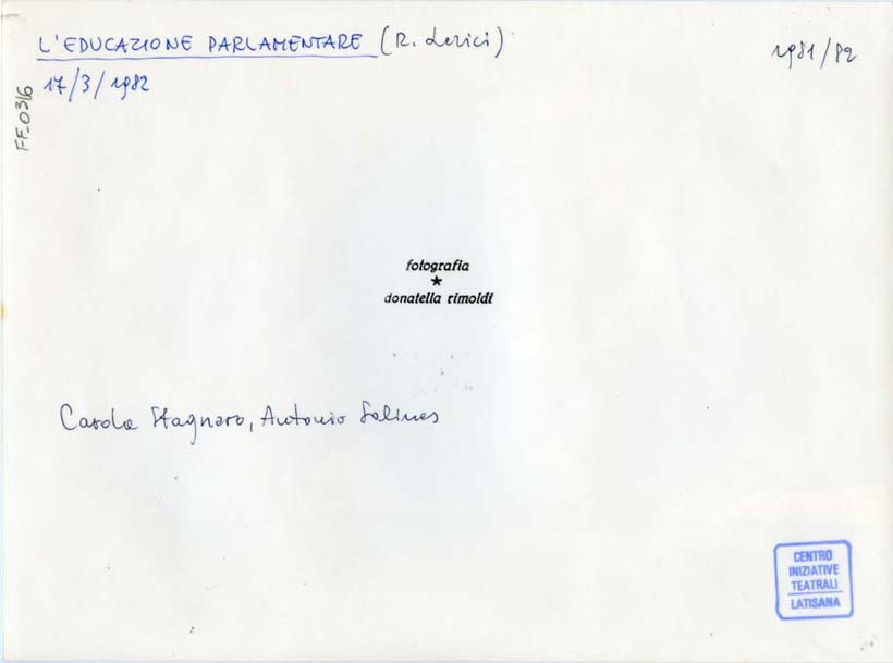 sul verso, in alto a sinistra: L'EDUCAZIONE PARLAMENTARE (R. Lerici)/ 17/3/1982