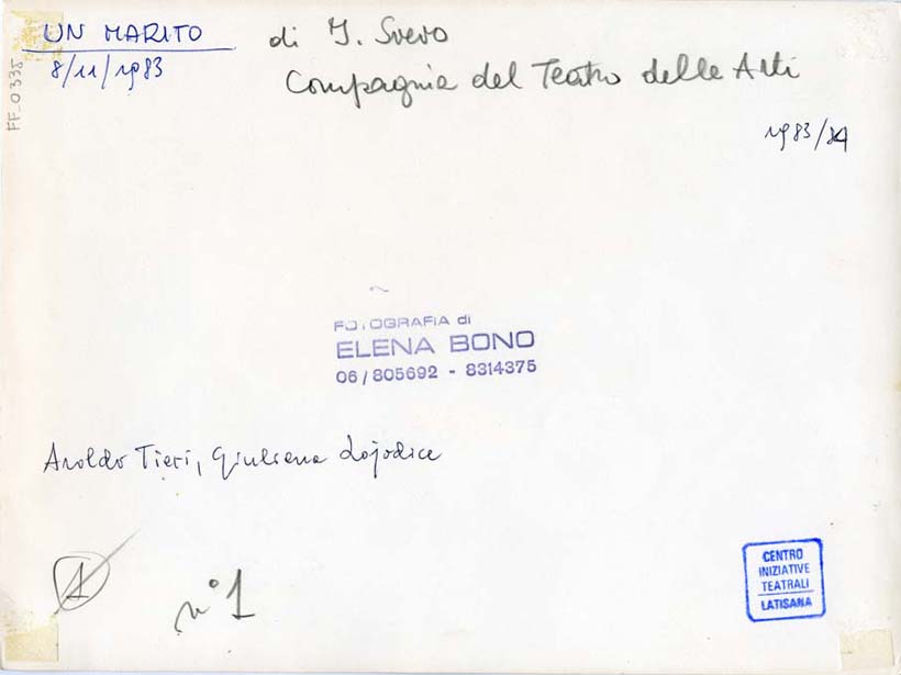 sul verso, in alto a sinistra: UN MARITO (I. Svevo)/ 8/11/1983
