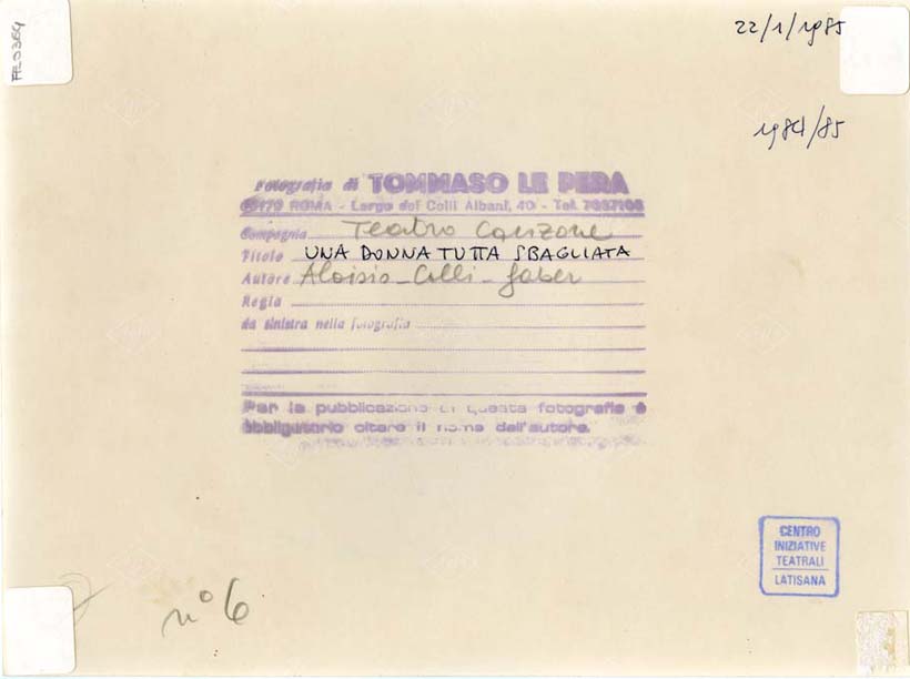 sul verso, al centro: UNA DONNA TUTTA SBAGLIATA