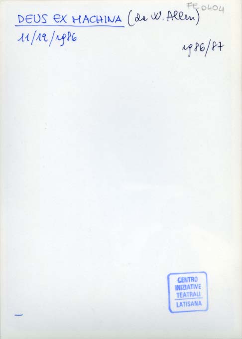sul verso, in alto a sinistra: DEUS EX MACHINA (da W. Allen)/ 11/12/1986