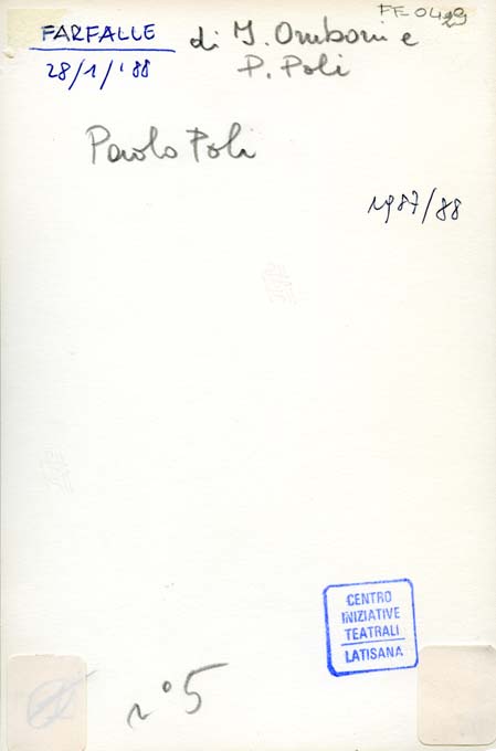 sul verso, in alto: di I. Omboni e/ P. Poli/ Paolo Poli/ n° 5
