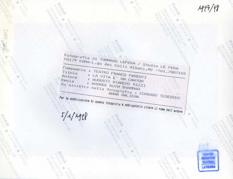 gelatina a sviluppo/ carta, Le Pera Tommaso