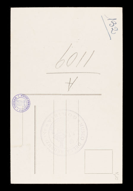 recto, in basso al centro: San Andrea bei Görz./ Zerschossene Kirche.