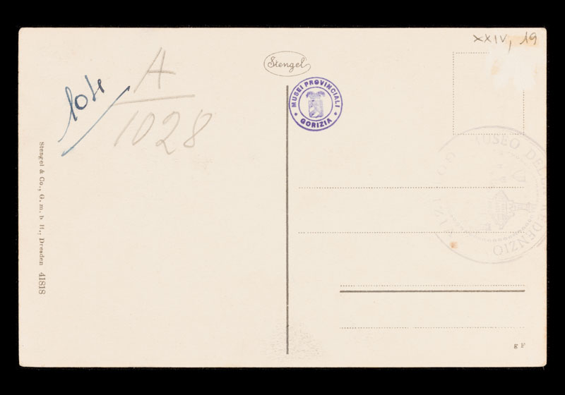 Veduta del Palazzo dell'Associazione cooperativa del Credito (poi Istituto nazionale della assicurazioni) situato in corso Giuseppe Verdi, già Via del Giardino, a Gorizia. In stile neogotico veneziano, risalente al 1903 ad opera dell'architetto Giorgio Polli. Cartolina non viaggiata.