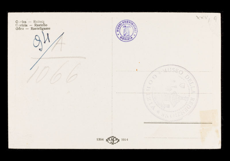 verso, in alto a sinistra: Gorica - Raštelj/ Gorizia - Rastello/ Görz - Rastellgasse